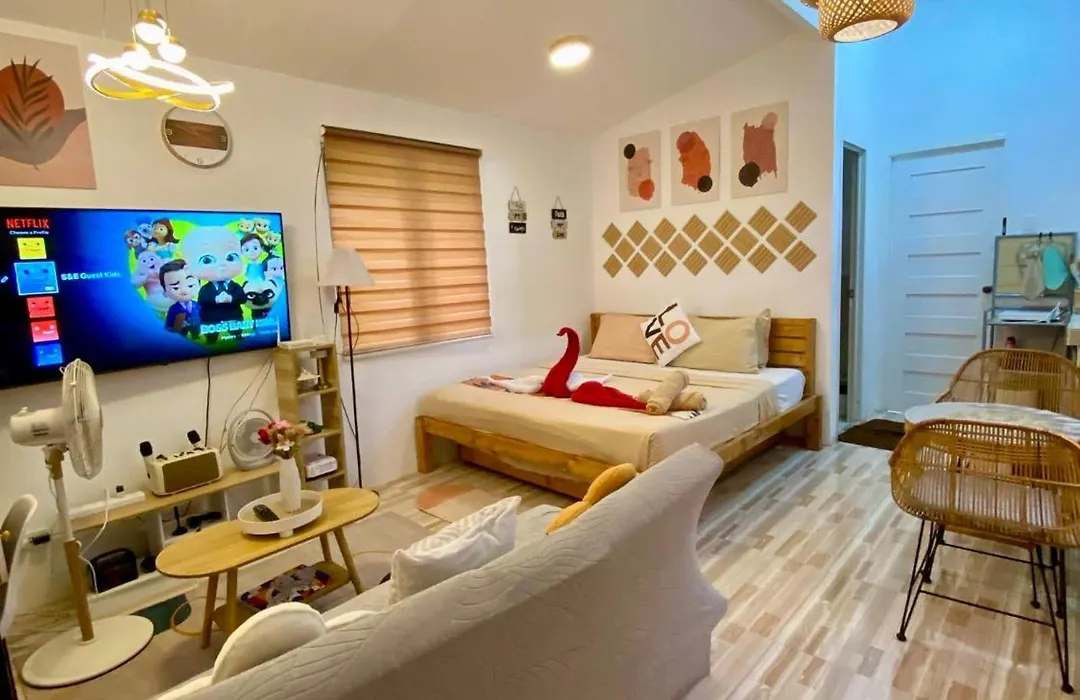 De 1-slaapkamer Olango Island - S&E-2 Tiny Guest House Fully Furnished With Hot Shower, Washer, Wi-Fi, Netflix & King-Size Bed Lapu-Lapu City villa bevindt zich binnen 5 km van Pangan-an en beschikt over een zonneterras met uitzicht op de straat.