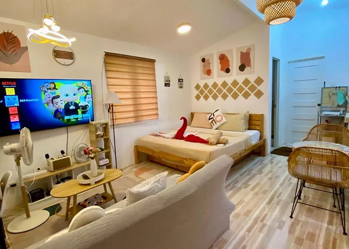 Deze woning is uitgerust met een waterkoker, een koelkast en een oven om zelf te koken in een eethoek buiten. De luchthaven Mactan-Cebu Internationaal is bereikbaar binnen 17 minuten rijden van deze 1-badkamer villa.